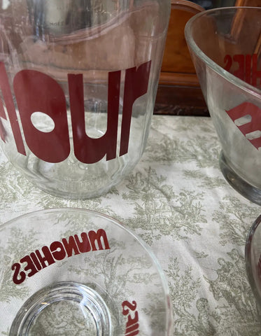 Up for consideration is a beautiful vintage set of red font munchies bowls and flour jar. This set would look lovely in your home on display or in use. This is also a great find for the interior design enthusiast. Please check out my other listings!