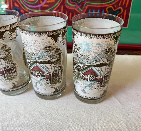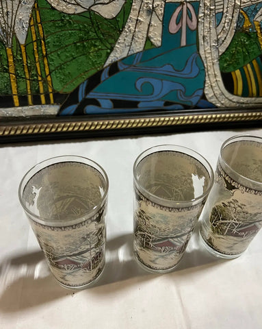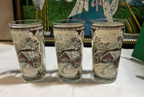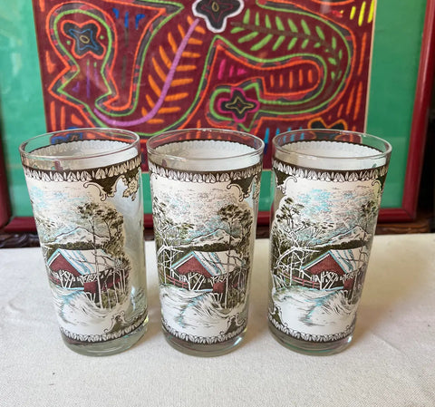 Up for consideration is a beautiful vintage trio of winter cabin fever, rustic style glasses. These would look lovely on display in your home or in use for the holidays. These are also a great find for the interior design enthusiast. Please check out my other listings!