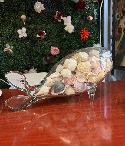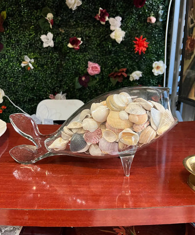 Up for consideration is a beautiful vintage blown glass fish decorative bowl with shells. This would look lovely in your home and it is a great conversation starter for your guests. This piece is also perfect for the interior design enthusiast. Please check out my other listings!