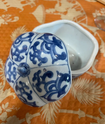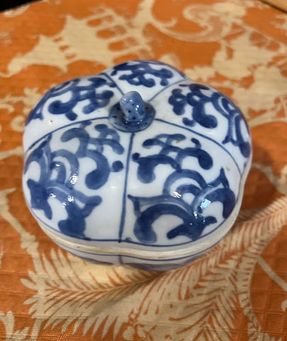 Up for consideration is a beautiful blue and white pumpkin style ceramic box. This would look lovely on display in your home and it is a great conversation starter. This is also a great find for the interior design. Please check out my other listings!