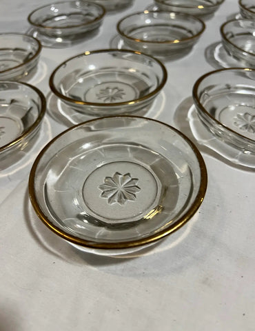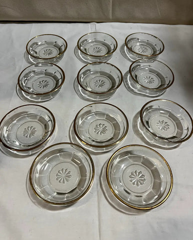 Collection of Gold Rimmed Glass Dishes With Etched Star Design- Set of 11
