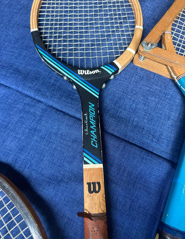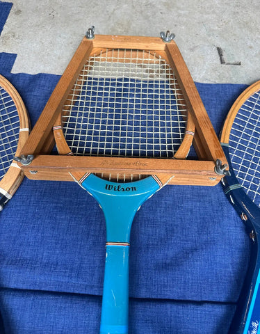 Collection of Vintage Wilson Tennis Rackets With Blue Accents