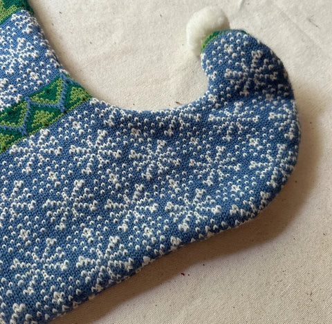 Extra Long Hand Knit Blue and Green Christmas Stocking
