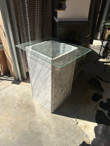 Up for consideration is a beautiful marble geometric table with a glass top. This would look lovely in your home and it is a great find for the interior design enthusiast. Please check out my other listings!