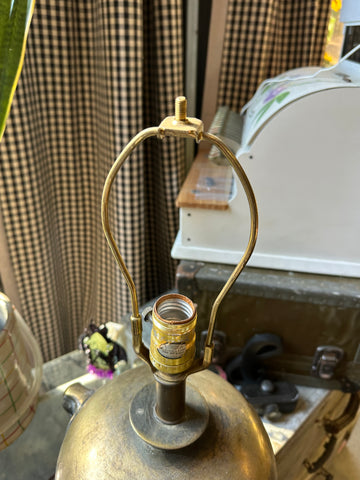 Large Vintage Heavy Brass Table Lamp with Elephant Details