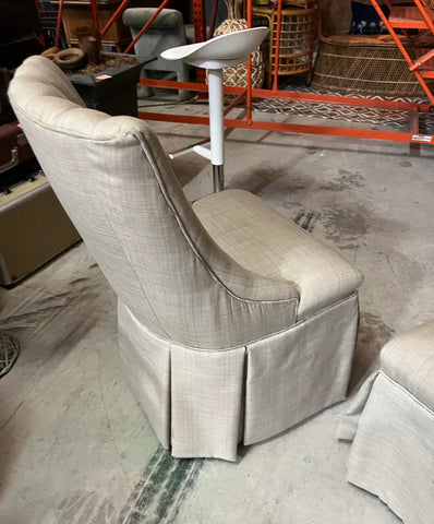 Up for consideration is a beautiful vintage pair of gray upholstered side chairs. These would look lovely in your home and they are a great conversation starter for your guests. This is also perfect for the interior design enthusiast. Please check out my other listings!