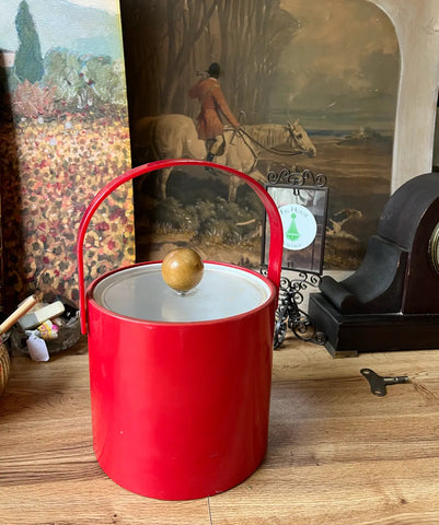Up for consideration is a beautiful vintage red plastic ice bucket/champagne bucket with wooden handle. This would look lovely in your home and it is a great way to add vintage style to your space. This is also perfect for the interior design enthusiast. Please check out my other listings!