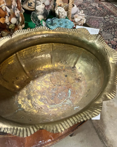 Round Brass Footed Bowl With Detailed Rim