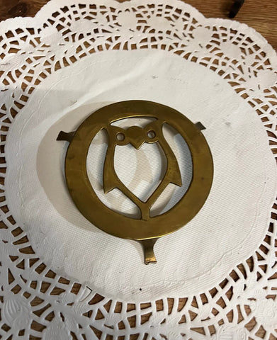 Small Brass Owl Heart Round Trivet