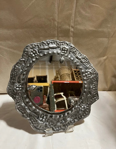 Up for consideration is a beautiful vintage small silver round detailed framed wall mirror. This is a great way to add elegance to your home with a touch of a vintage style. This is also a perfect find for the interior design enthusiast. Please check out my other listings!
