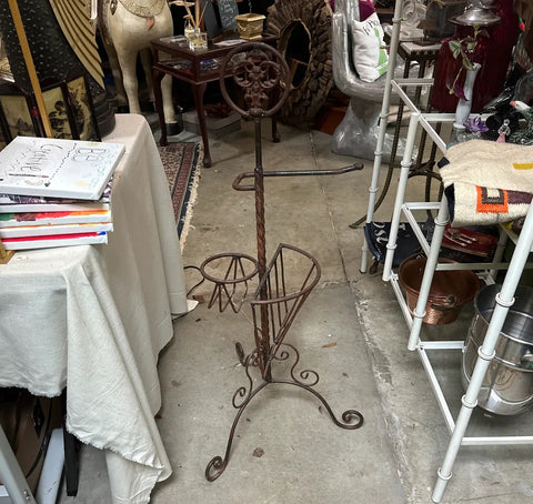 Standing Wrought Iron Decorative Blanket Holder and Basket