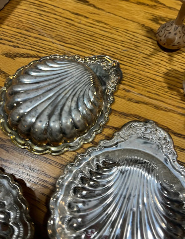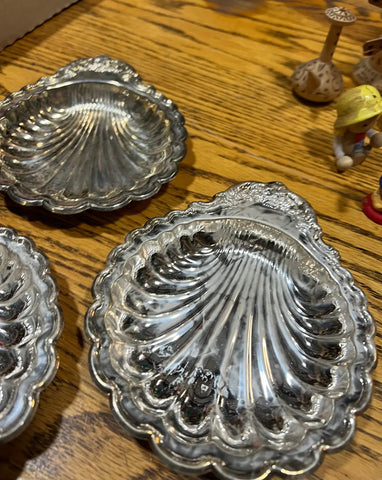 Up for consideration is a beautiful vintage trio of silver shell catchalls. These would look lovely as a set or spread out throughout your home. These are also a perfect find for the interior design enthusiast. Please check out my other listings!