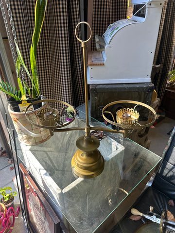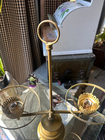 Up for consideration is a beautiful vintage brass double oil lamp style table lamp. This is such a lovely piece that would look perfect in your home, and it is a great conversation starter for your guests. This is also a gorgeous find for the interior design enthusiast. Please check out my other listings!