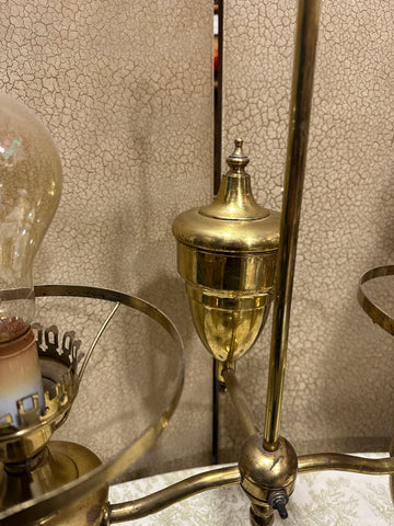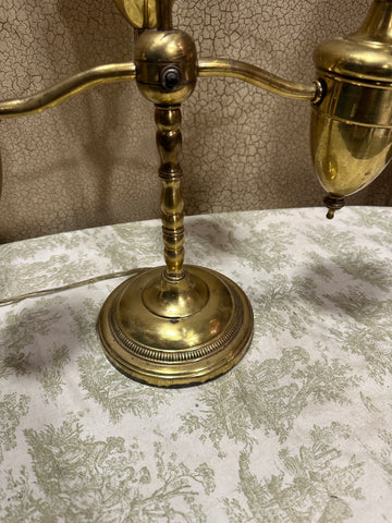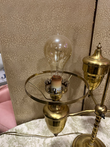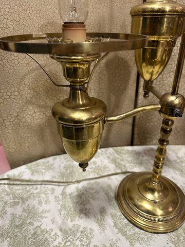 Up for consideration is a beautiful vintage brass oil lamp style table lamp. This is such a lovely piece that would look perfect in your home, and it is a great conversation starter for your guests. This is also a gorgeous find for the interior design enthusiast. Please check out my other listings!