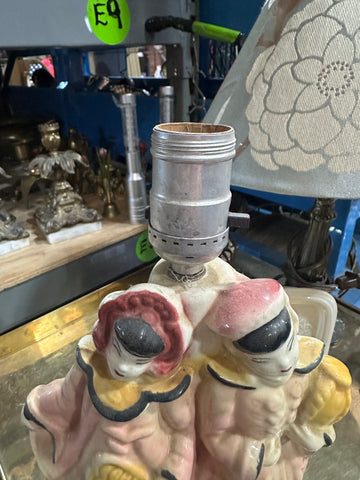 Vintage Ceramic Table Lamp of Two Asian Women with Pink and Yellow Accents