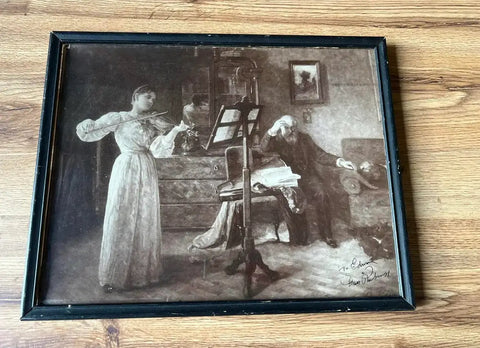 Up for consideration is a beautiful vintage French print of "The Violin Lesson" in a black frame. This would look lovely in your home and it is a great conversation starter for your guests. This piece is also perfect for the interior design enthusiast. Please check out my other listings!