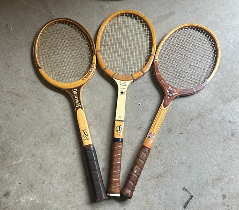 Vintage Spalding and Davis Trio of Wooden Tennis Rackets