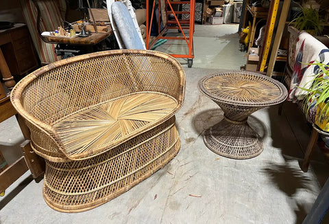 Vintage Wicker Double Seater Sofa and Side Table