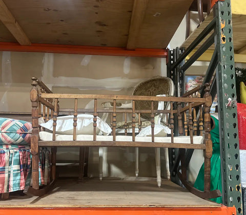 Vintage Wooden Hand Carved Baby Crib