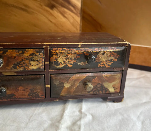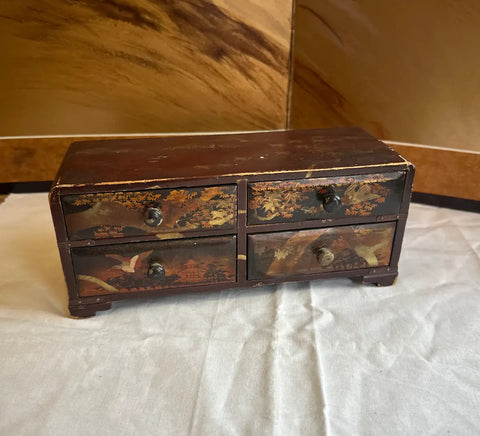 Vintage Wooden Miniature Asian Style Jewelry Box