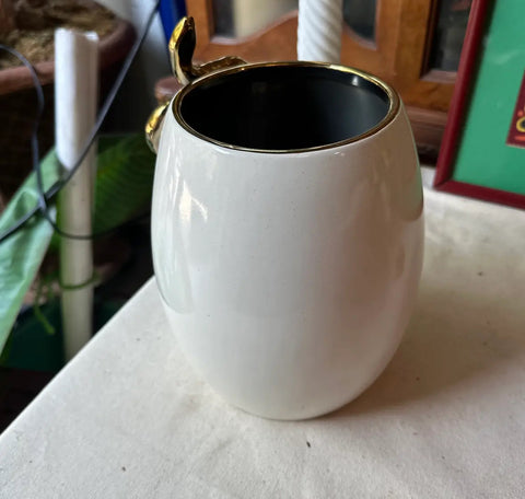 White Ceramic Planter/Vase With Gold Snake Accents