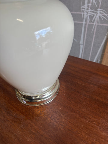 Vintage White Ceramic Table Lamp with Silver Base