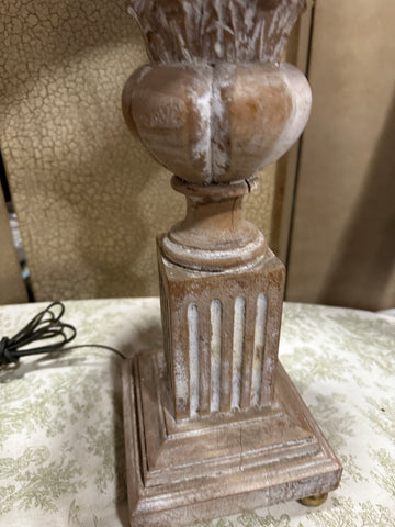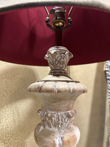 Wooden Hand Carved Rustic Style Lamp with Shade