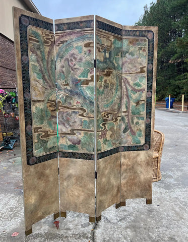 Up for consideration is a beautiful vintage Asian style large screen with bird and foliage details. This would look lovely in your home and it is a perfect conversation starter for your guests. This piece is also a great find for the interior design enthusiast. Please check out my other listings!