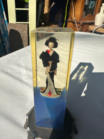 Up for consideration is a beautiful vintage Asian woman Lucite figurine display. This would look lovely on display in your home, and it is a great conversation starter. This is also a great find for the interior design enthusiast. Please check out my other listings!